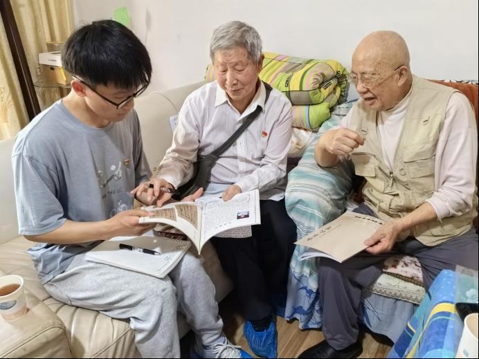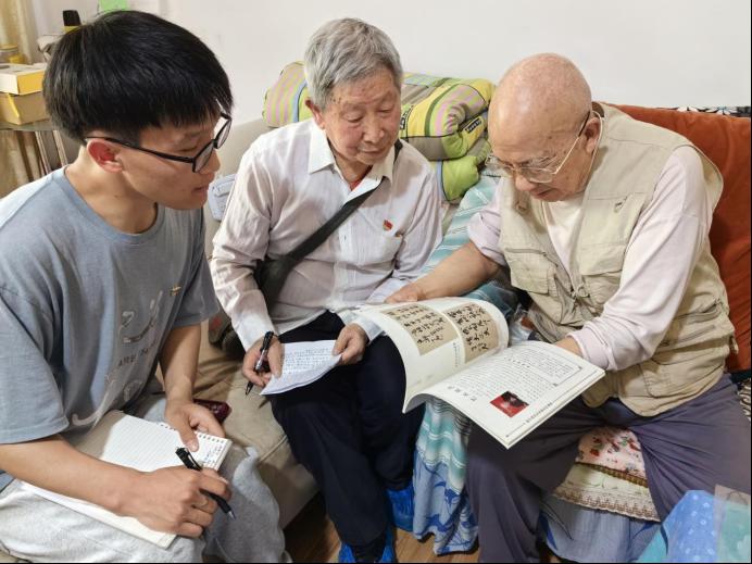 最后,滕久军老师补充道,在重要的历史关头,总会有热血青年挺身而出,一往无前。他们创造这和平盛世,让我们能够安享剩下的岁月,当今时代需要年轻一代的党员担起这个时代赋予的重任。每一位老兵都是一段鲜活历史,每段讲述都是一份红色记忆。他和战友们是战争时代的见证者,是我们美好生活的奠基者,没有他们当年的流血牺牲和无私奉献,就没有我们今天的幸福生活,身处和平年代的我们,应该铭记他们的付出,把他们的精神传承到每一代的青年党员中。