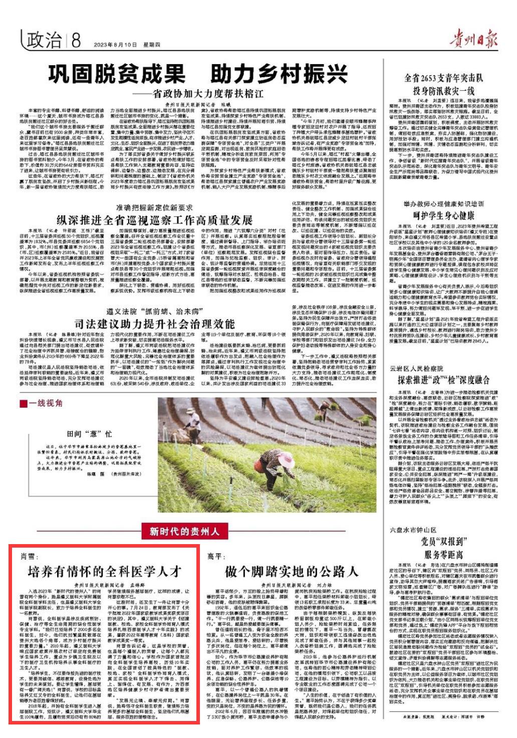 入选2023年“新时代的贵州人”的肖雪有两个身份,她是TapTap188改名(点点)全科医学科主任,也是TapTap188改名(点点)副经理,致力于培养全科医生的一名教师。