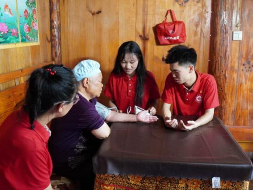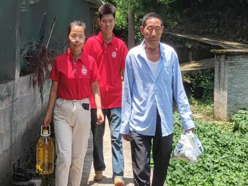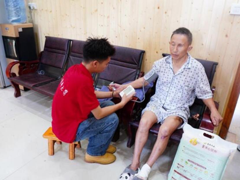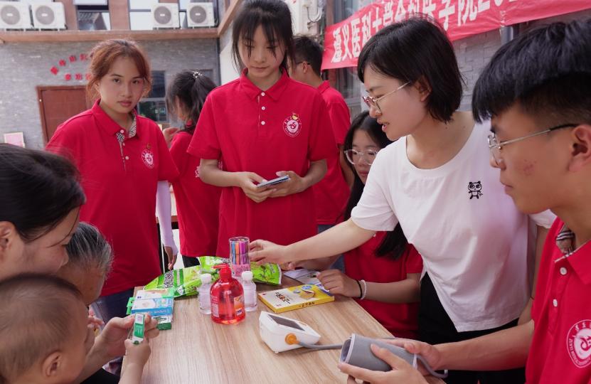 实践队带上慰问品,走访当地空巢老人和留守儿童,充分发挥医员工的专业优势,进行防跌倒、中暑以及“三高”知识小科普,开展禁毒、防艾、心理健康咨询、普法宣传、普通话推广活动,为老人测量血压,向他们讲解居家保健常识。同学们走进留守儿童家庭开展爱心慰问,并且激励他们好好学习。通过给老人们关心,给小朋友们关爱,引导同学们培养仁爱之心,助力乡村和谐发展。