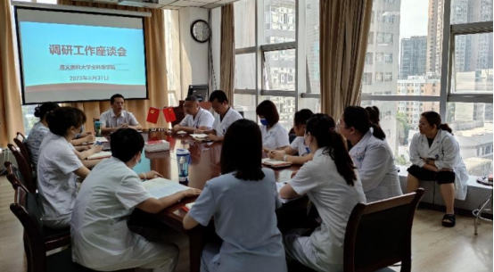 此次调研从传承红色基因、理想信念教育在培养“勇担时代责任、扎根基层助力乡村振兴的全科医疗人才”的重要作用这个主题开始,大家分三个方面开展座谈,一是培养全科员工的家国情怀是否为加强公司党的建设的必要内容,是否为遵义红色资源是其中重要素材,是否可拓展到贵阳周边的阳明文化,加强传统文化的内涵因子;二是员工在基层就业情况的具体了解,“三个100%”是否有变化,若有变化,变化的因素有哪些;三是党建工作品牌打造,全力构建“一个党员、一面旗帜、一个支部、一个堡垒、一个品牌、一种力量”的格局,员工需要这种力量,在理想信念的支撑下坚守在基层。