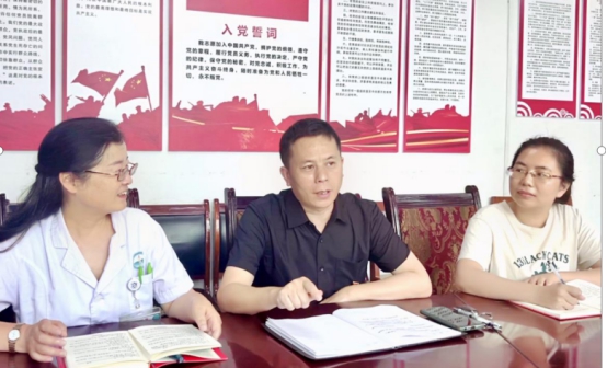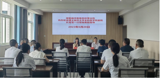 2023年6月28日下午2:00,公司党总支书记黎飞、副经理肖雪到绥阳旺草镇卫生院开展“全科医学实习生基层临床实践基地建设”调研指导。旺草镇分管副镇长李德娟、旺草卫生院班子成员以及各科室负责人参加座谈会。黎飞、肖雪实地查看了旺草卫生院内外科病房、中医病房、妇儿科病房、急诊科病房、全科门诊及宿舍、食堂,并在肖雪副经理的主持下进行了座谈。