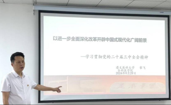 2024年9月29日,公司党总支书记黎飞就党的二十届三中全会精神开展专题宣讲,60余名党员师生、团学干部参加。黎飞书记围绕全会基本情况、主题、改革经验及重大意义等方面进行深入讲解,强调学习贯彻全会精神是重大政治任务,要求师生提高政治站位,敢于改革创新。与会师生表示,将以此次宣讲为契机,坚定信念,努力学习,在中国式现代化实践中展现青年担当作为。此次宣讲加深了师生对全会精神的理解,为学院发展提供了方向指引。(一审:左丹妮,二审:李庆钰,三审:黎飞,撰稿:左丹妮,图片:左丹妮)