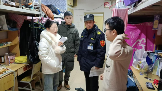 为进一步加强员工冬季防火安全意识,2024年12月17日上午9:00,博爱社区开展“筑牢安全防线 创建平安校园”系列消防安全活动,公司党总支书记黎飞、辅导员杨晓艳以及附院保卫处工作人员等开展了对博爱社区明德公寓的防火安全专项检查。