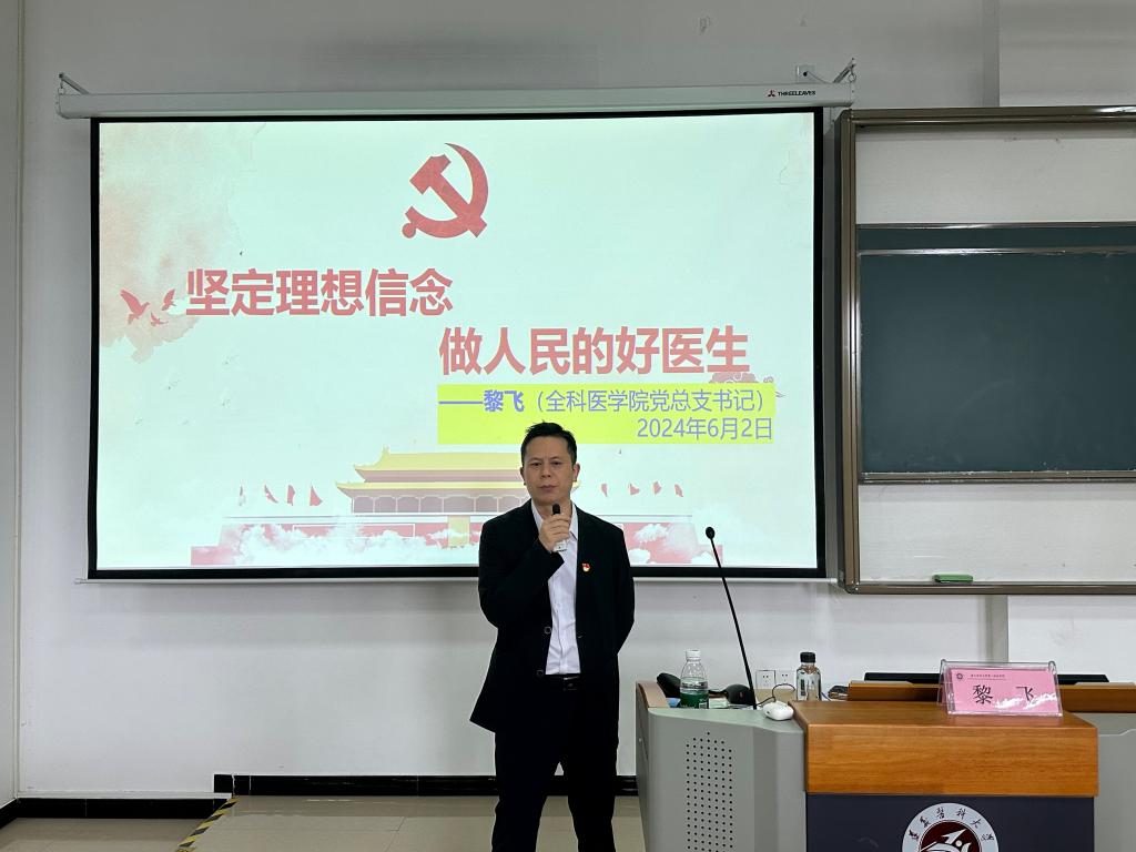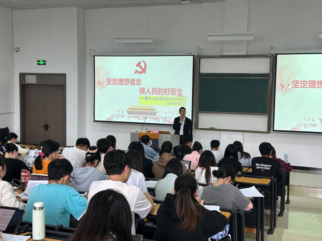 2024年6月2日下午,公司党总支书记黎飞在第三教学楼18阶梯教室为临床学院、TapTap188改名(点点)、附属医公司党员发展对象上了题为“坚定理想信念,做人民的好医生”的党课。