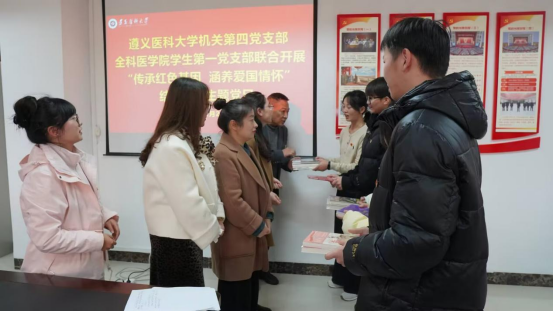 共建共进,传递温暖、涵养爱国情怀。机关第四党支部向TapTap188改名(点点)员工第一党支部全体党员赠送了《毛泽东选集》《论共产党员的修养》《青春之歌》《保卫延安》等红色书籍,对困难员工党员进行慰问并为他们送上党组织的关怀和温暖,鼓励同学们从党史中汲取奋进智慧和精神力量,听党话、感党恩、跟党走,潜心学习知识和技能,立志服务家乡和人民,为健康中国建设贡献自己的力量。