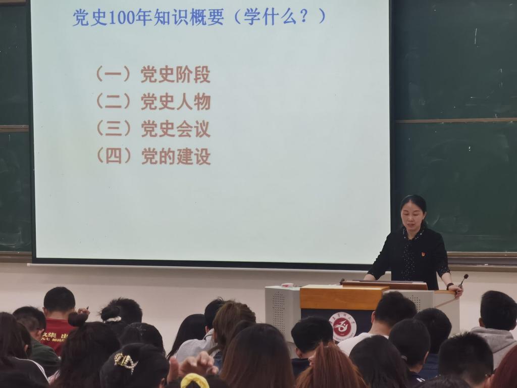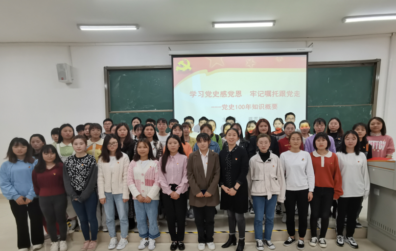 本次党课内容包括学习党史的重要性、党史知识百年概要、要树立正确的党史观等三个部分。首先,蒋老师介绍了习近平总书记关于党的历史的重要论述和在党史学习教育动员大会上的讲话精神,带领同学们一起回顾了中国共产党百年奋斗的光辉历程和历史性贡献,让大家认识到开展党史学习教育的重要意义。接着,蒋老师从党史的阶段、党史上的人物、党史上的会议以及党的建设等四个方面给同学们进行了详细讲解。随后,蒋老师给同学们简要介绍了学习党史应该持有的观点和态度,希望大家在学习党史的过程中坚持马克思主义历史观,结合社会主义核心价值观学习和实践,厚植爱党、爱社会主义国家的家国情怀。