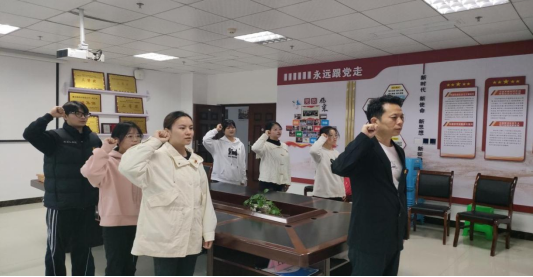 宣誓开始前,黎飞给大家讲解了中国共产党发展史,通过峥嵘的革命岁月和先辈事迹坚定大家的理想信念。最后,黎飞领读入党誓词,全体预备党员肃立宣誓。