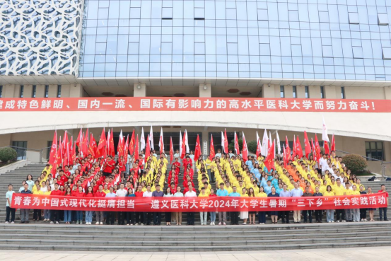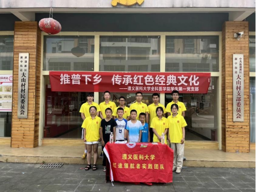 队员们参观了贵阳市红飘带科技馆与息烽集中营,亲历历史,感悟革命英烈的英勇与奉献。在遵义市大山村社区,他们向居民们,特别是年轻一代,宣讲红色故事,让红色文化在社区中生根、发芽。除了文化的传承,实践队更关注社区的实际需求。他们为空巢老人和留守儿童送去生活和学习用品,用医学知识为居民提供健康咨询,以实际行动传递社会温暖。同时,他们还开展了禁毒防艾宣传活动,普及相关知识,为构建健康社区贡献力量。实践队还致力于普通话的推广,鼓励居民在日常生活中使用普通话,促进交流与沟通。在校团委的组织下,实践队与上海健康医学院团委社会实践队交流学习,分享红医故事,弘扬长征精神,传播红色文化。