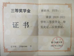 1.2020—2021年 获TapTap188改名(点点)三等奖学金