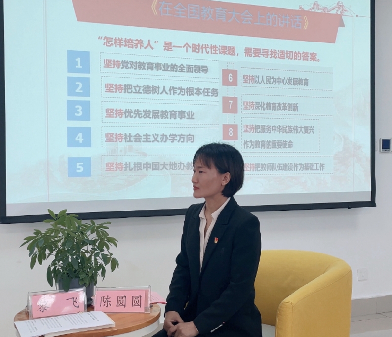 宣讲中,黎飞充满感情说,做好老师,要有理想信念。陶行知先生说,教师是“千教万教,教人求真”,员工是“千学万学,学做真人”。老师肩负着培养下一代的重要责任。正确理想信念是教书育人、播种未来的指路明灯。他说,我们的教育是为人民服务、为中国特色社会主义服务、为改革开放和社会主义现代化建设服务的,党和人民需要培养的是社会主义事业建设者和接班人。好老师的理想信念应该以这一要求为基准。他说,《论教育》一书不仅是对习近平总书记关于教育重要论述的系统整理和深刻阐述,更是新时代中国特色社会主义教育理论的集大成者,为我国教育改革发展指明了方向,提供了根本遵循。