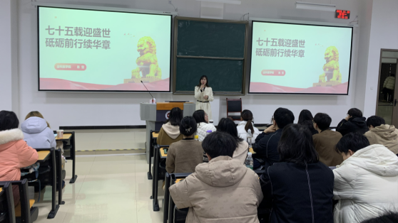 肖雪老师以“七十五载迎盛世,砥砺前行续华章”为主题,从“经济持续健康发展”“民主之路越走越宽”“文化发展更加繁荣”“人民生活极大改善”“美丽中国焕发新颜”五个方面展开,讲解了中国共产党团结带领各族人民艰苦奋斗,洗雪民族耻辱,中国人民从站起来、富起来到强起来的伟大历史进程。