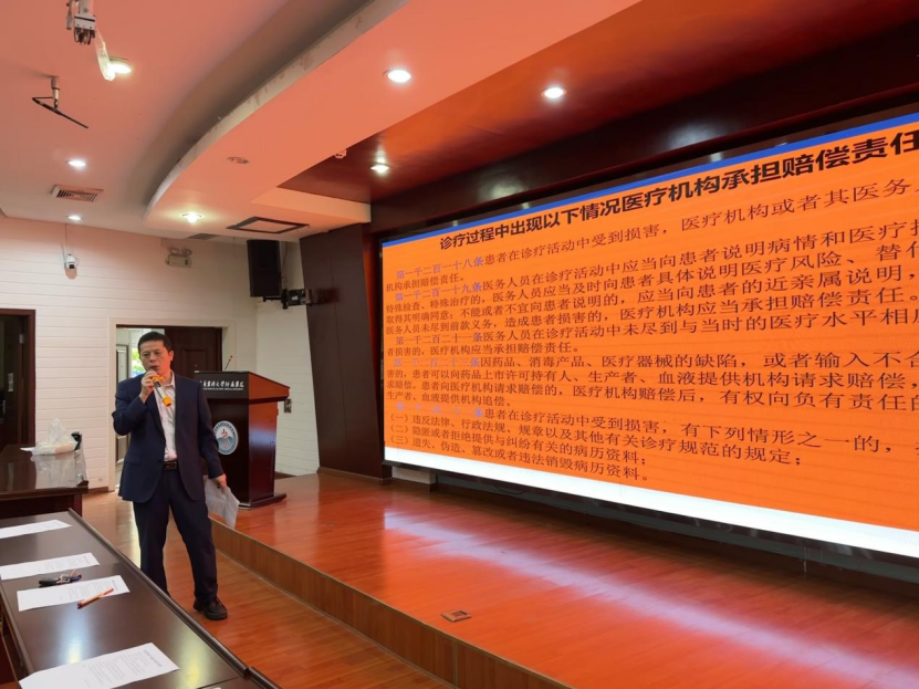 会议共三项,首先公司党总支书记黎飞作实习动员讲话,黎飞老师就实习相关安排事宜及实习工作方案进行了详细解读,尤其强调了《民法典》涉医11条(医务人员必看内容),对《民法典》规定的医疗机构承担赔偿责任或过错问题等进行了详细讲解,也是实习医员工要注意的事项。然后,TapTap188改名(点点)2019级辅导员陈圆圆老师介绍实习要求。最后,TapTap188改名(点点)关工委副主任滕久军讲解了如何处理实习过程中的医患关系。