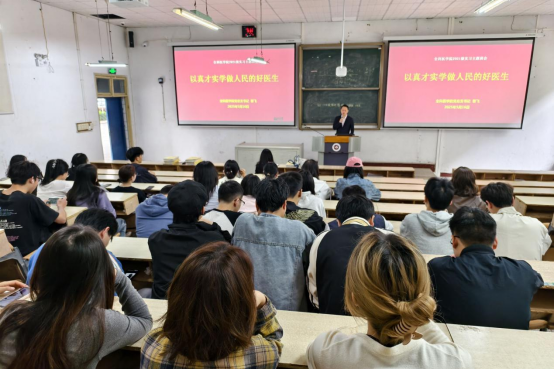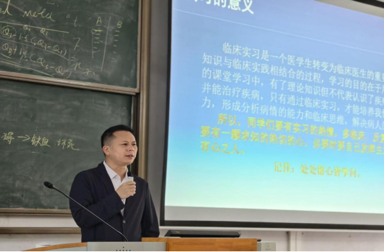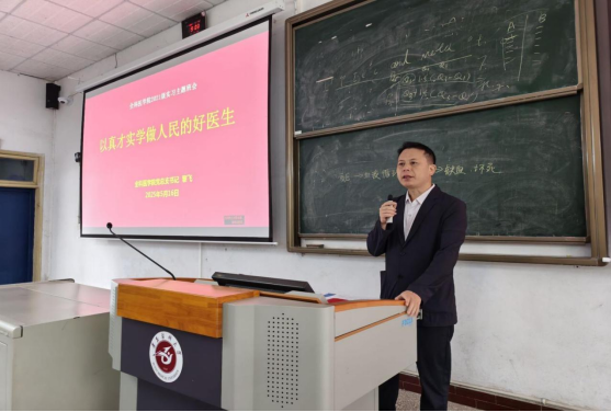 会上,黎飞书记以“以真才实学做人民的好医生”为题,从实习的意义、实习模式、各实习医院的特点、医疗中的“民法典”、实习过程中的一些问题等五方面进行了讲解,就实习相关安排事宜及实习工作方案进行了详细解读。强调了临床实习在医学教育中的关键地位,它是理论知识与实践相结合的重要阶段,也是同学们从员工向医务工作者转变的关键时期。2021级辅导员杨晓艳老师介绍了相关实习要求,希望同学们能够珍惜实习机会,以高度的责任感和使命感投入到实习中去,在实践中提升专业技能,培养良好的医德医风,为未来的职业发展打下坚实基础。