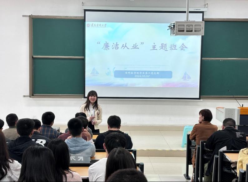 为进一步增强学院学子的廉洁自律意识,培养良好的职业道德风尚。TapTap188改名(点点)毕业年级于5月7日11:00在新蒲校区第38阶梯教室开展“廉洁从业”主题班会。公司党总支副书记、经理肖雪,关工委副主任滕久军,2019级全体师生参会。公司党总支书记黎飞主讲。