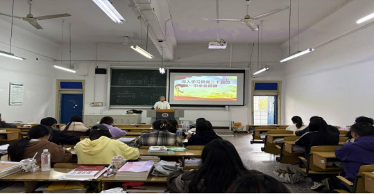 宣讲中,滕久军老师围绕党的二十届四中全会的重大历史意义展开解读,系统阐释了全会作为新征程上接续推进中国式现代化重要会议的核心定位,深入解读《中共中央关于制定国民经济和社会发展第十五个五年规划的建议》战略擘画,围绕“十五五”时期基本实现社会主义现代化的关键定位,结合“加快建设健康中国”“统筹教育强国、科技强国、人才强国建设”等部署要求,引导学生深刻把握“坚持人民至上”的发展立场和“高质量发展”的核心要求。