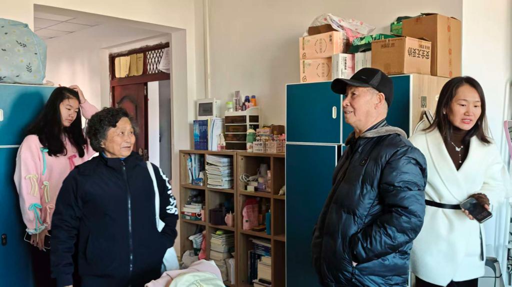 2025年11月19日上午,学校关工委副主任冷运琴来到公司员工宿舍,对全科医员工的住宿情况进行走访检查,并深入了解员工们在课余时间的活动安排及宿舍便利条件。此次走访检查旨在提升员工的生活质量,促进员工的全面发展。学院参加陪同的老师有学院关工委副主任滕久军、学院辅导员杨晓艳老师和陈圆圆老师。